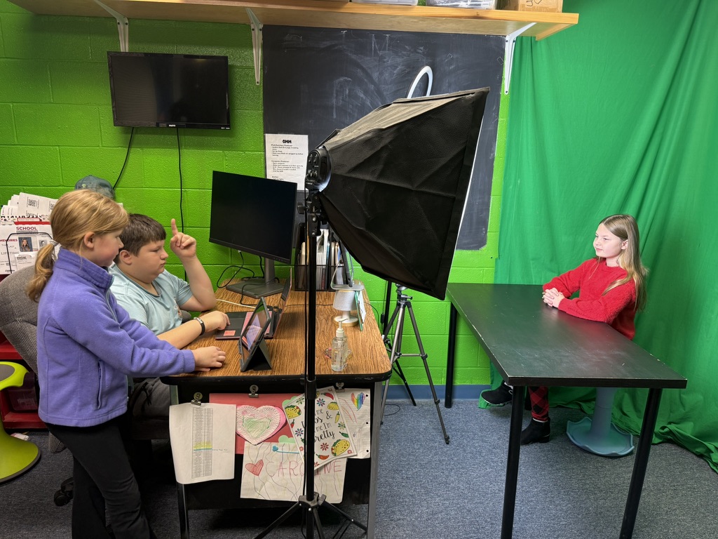 Members of the Morgan Elementary Digital Media Team recording an episode of Good Morning Morgan