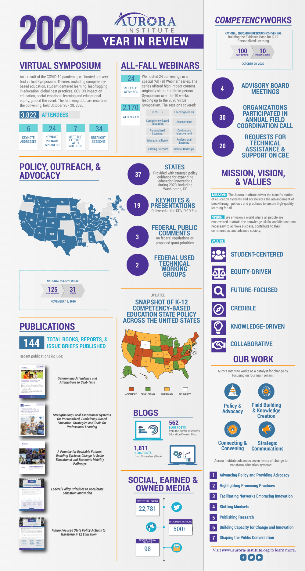 • Our first-ever virtual symposium drew nearly 4,000 attendees. The annual event remains the convening of choice for educators, policymakers, practitioners, and researchers sharing from the leading edge of education innovation. A series of 24 webinars complemented and extended that learning. Stay tuned for details on this year’s event.