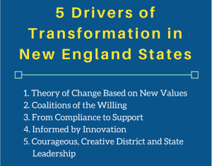In most of the New England states, competency-based education is advancing with a new set of values that are the foundation of competency-based education as well as being used by principals, districts, and even state policymakers to catalyze the transformational process: