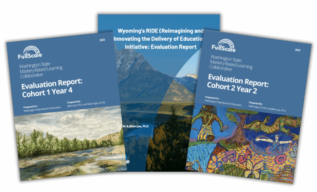 At FullScale, our Evaluation and Measurement team works alongside education leaders to advance the field’s understanding of how systems, schools, and practitioners are moving toward more personalized, competency-based, whole-child learning approaches. We design and study measurement tools across diverse contexts, and adapt research methods and analytic frameworks to build powerful, contextualized evidence-based narratives about what’s working, for whom, and under what conditions.