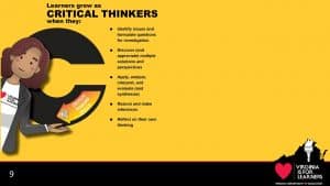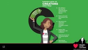 We want them to be creators. At the end of the day, the future economy in our world is going to be with the entrepreneurs, and we want our students to have those experiences every day in school. We don’t have to just talk about what these skills are. We have to build them into our standards and our assessments, so students have opportunities to experience this learning. Everyone typically has at least those first four Cs. In Virginia, we added community-minded citizens. But we also focus on global citizenship. We also focus on work citizenship, so students don’t just think as citizenship as character and being ready for school every day, but the type of activities that they’ll need to do when they get into the workplace.